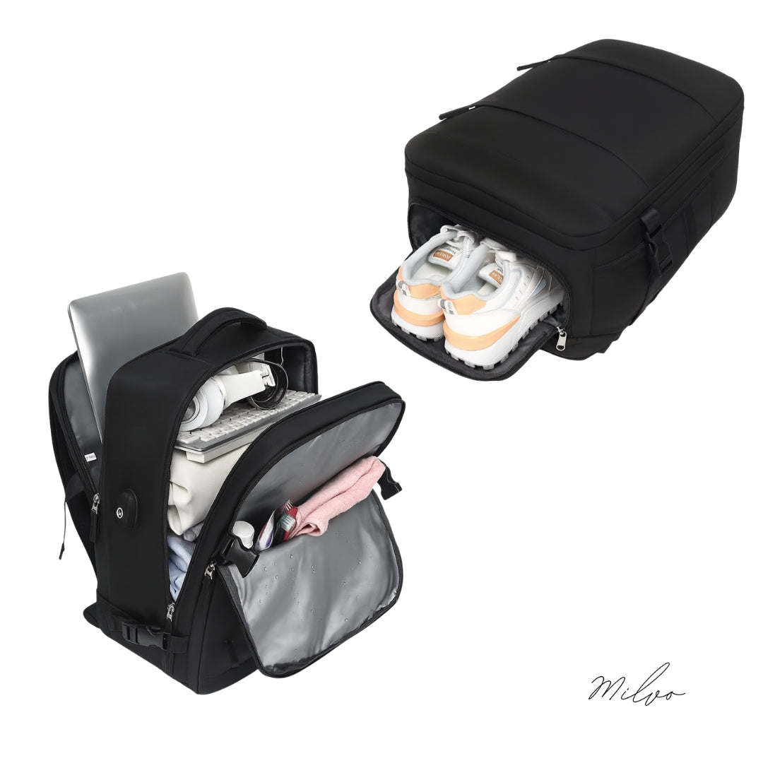 A Milvo egy stílusos, kézipoggyász-kompatibilis utazótárs, amely prémium anyagaival, okos rekeszeivel és kifinomult kialakításával gondoskodik rólad – akár a repülőtéren, akár egy rövid kiruccanáson.