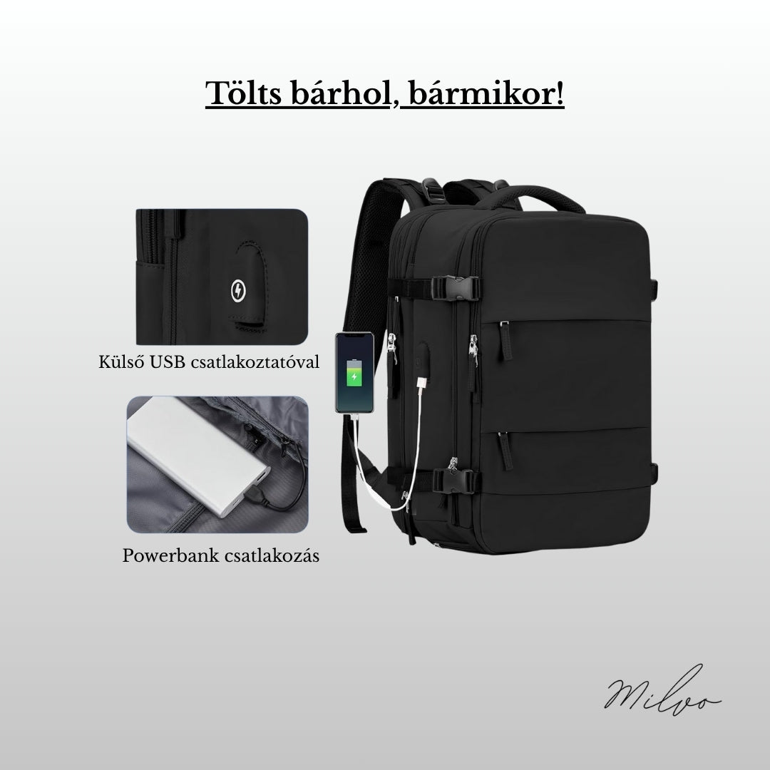 A Milvo táska beépített USB-kimenetével útközben is töltheted a telefonodat, vagy bármilyen elektromos készülékedet. Nem kell többé attól tartanod, hogy lemerülsz, miközben a járatodat vagy a következő úti célt keresed. Mindig kisegít a bajból!