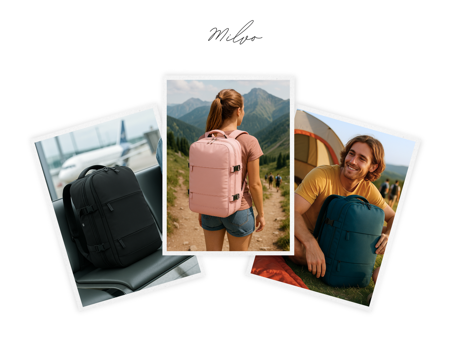 A Milvo egy kézipoggyász méretű utazótáska, amely tökéletes repülőutakhoz, 3–4 napos kiruccanásokhoz vagy akár kempingezéshez is.
